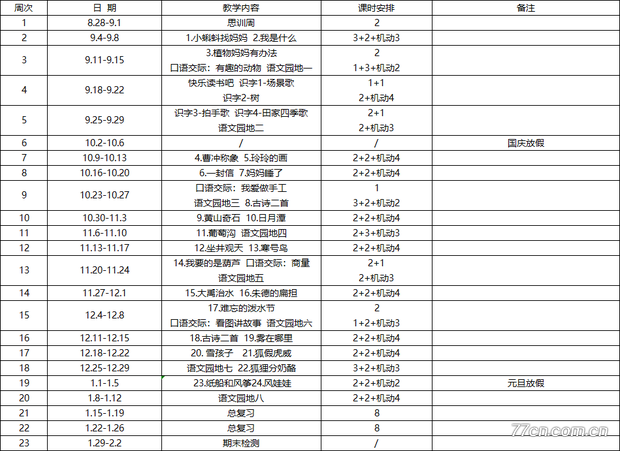 (一)结构:2017部编新教材识字单列一个单元(第二单元),其余25篇课文分列七个单元,另含8篇学习园地,4篇口语交际,1篇快乐读书吧。