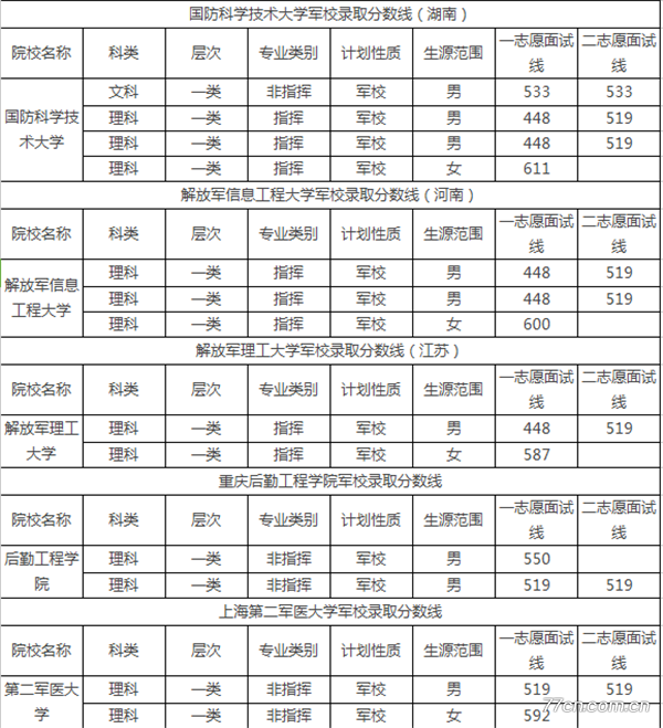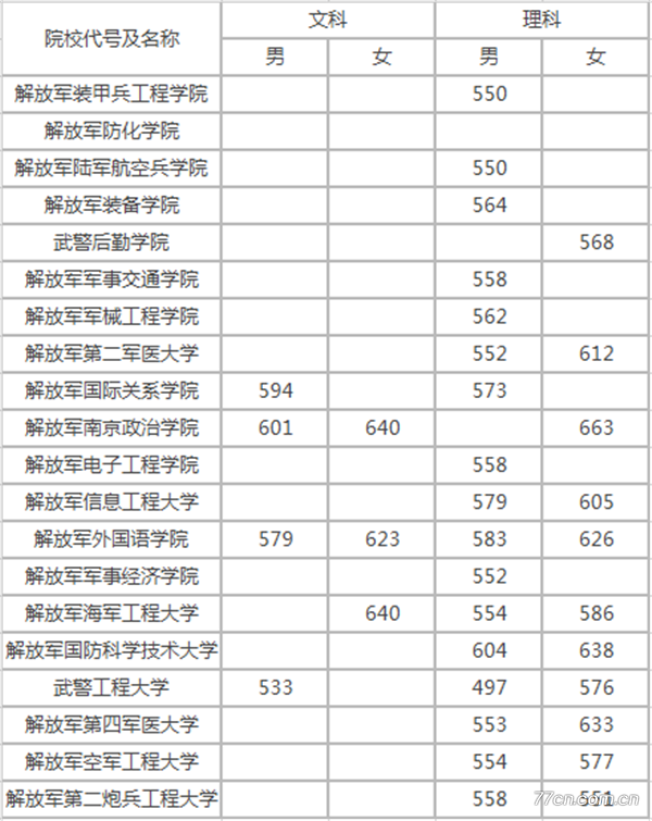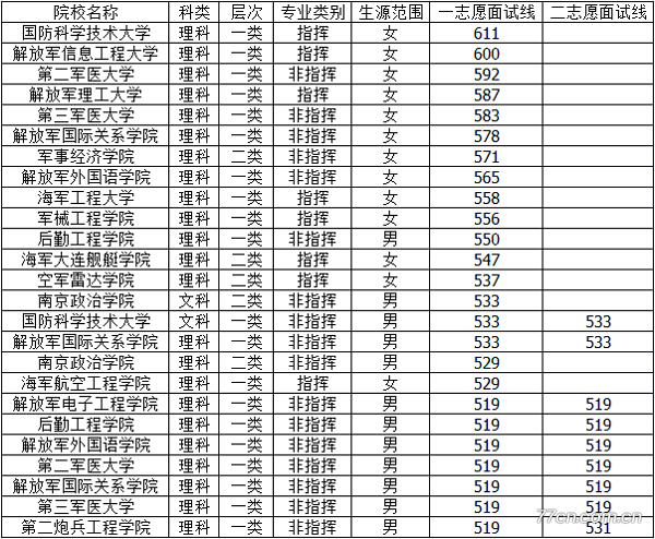 性别要求:根据军校的性质和任务,有些军队院校不招收女生,还有一部分院校规定了男女录取比例。在这里需要提醒考生的是:如果军队院校在招生章程中没有特别说明招收女生的专业,均不招收女生。